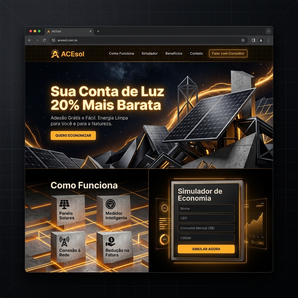 Sem obras, sem furos no telhado e sem investimento inicial. Conectamos você diretamente a fazendas solares homologadas pela ACESol.